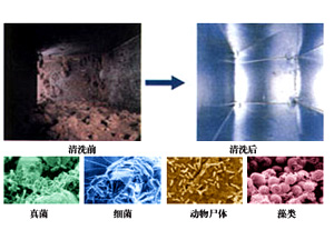 清洗前后與微生物                                                  風(fēng)管清洗原理圖